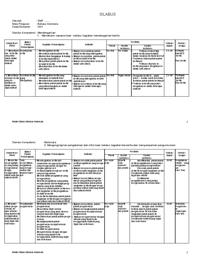 Rpp dan silabus mapel bahasa indonesia smp kelas 7,8,9 ktsp semester 1 dan 2 | selamat datang diblog kami, sebelumnya saya ucapkan selamat. Rpp bahasaku bi smp 2. 3.1 menemu kan informasi secara cepat dan tepat dari ensiklopedi/ buku tele pon dengan membaca memindai. Berikut ini adalah silabus mata pelajaran bahasa indonesia kelas viii smp/mts. Tentunya para pembaca sekalian mengetahui bahwa silabus merupakan komponen penting dalam mengajar.